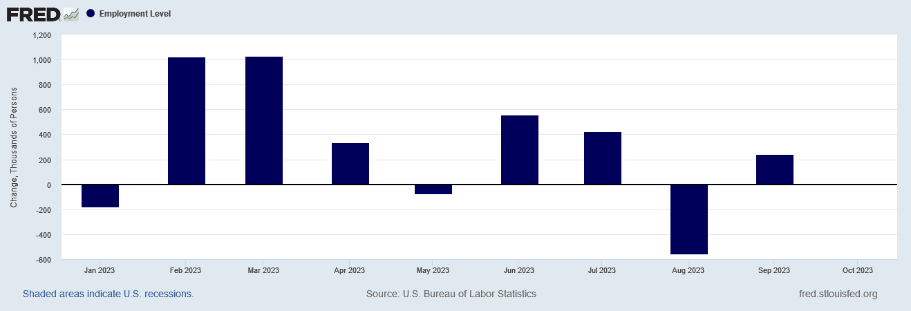 We have a good idea that there has been significant damage to the economy, as from the Household Survey portion of the Employment Situation Summary report, total employment growth in October on an unadjusted basis was a whopping 7,000 people