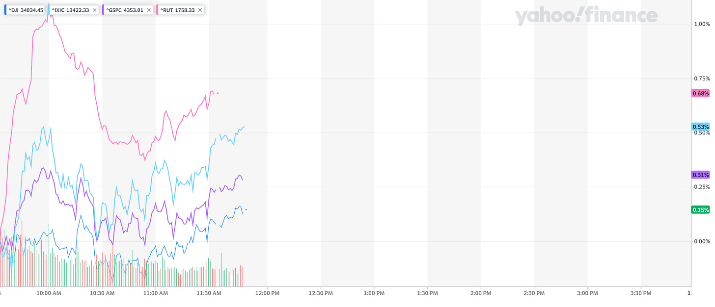 Both the S&P 500 and Dow are on track to notch their largest weekly gains this year and the Dow closed its best day since June.