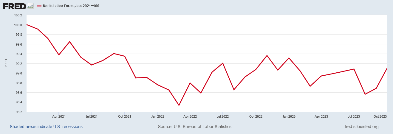 The amount of people not in the labor force has only declined 0.9% on Dementia Joe’s watch, after increasing by nearly 10% during and after the Pandemic Panic Recession