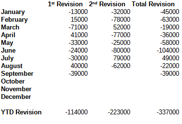 150,000 possible jobs in October less 101,000 fake jobs from August and September adds up to not a lot of jobs for anyone.