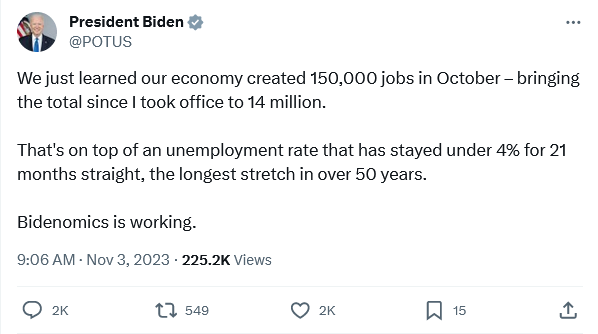 150,000 jobs is quite the come-down from September’s 336,000, only the September data was not so rosy either.