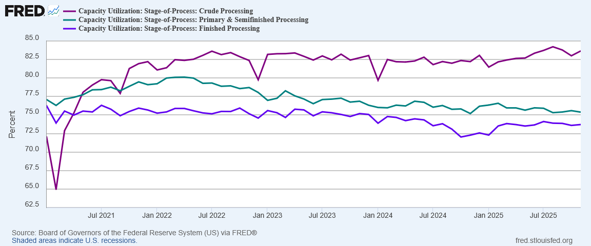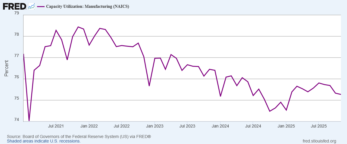 While manufacturing capacity utilization staged a recovery during the first half of 2025, since July the sector has been retreating once again.