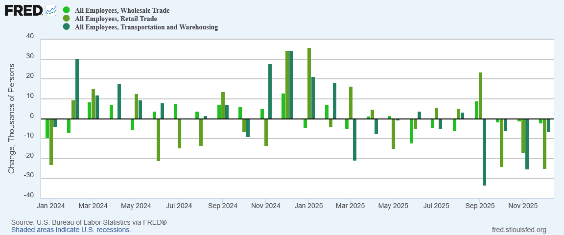 Drilling into the sectors within Trade and Transportation, the jobs carnage was across the board.