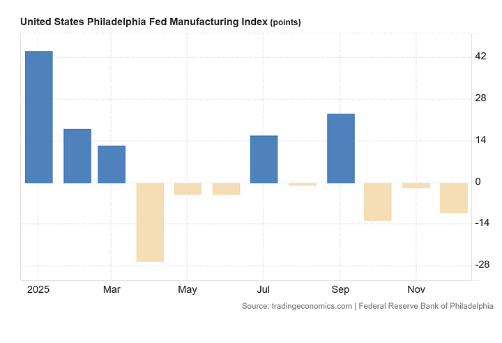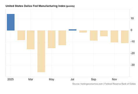 As I discussed when reviewing the November JOLTS data, even the Federal Reserve’s regional manufacturing indices do not show US manufacturing on the upswing.