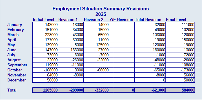 For the year, some 621,000 initially reported jobs have been removed from the BLS jobs data in subsequent months.