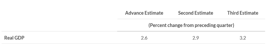 Yesterday the Bureau of Economic Analysis released its final estimate for 3rd Quarter GDP growth in the United States. Coming in at 3.2%, it was a significant improvement over the prior estimate.