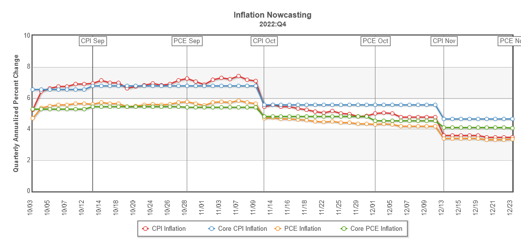 The Cleveland Fed is also projecting hopeful energies on the inflation front, with their nowcast projecting 3.47% inflation for the fourth quarter.