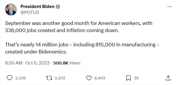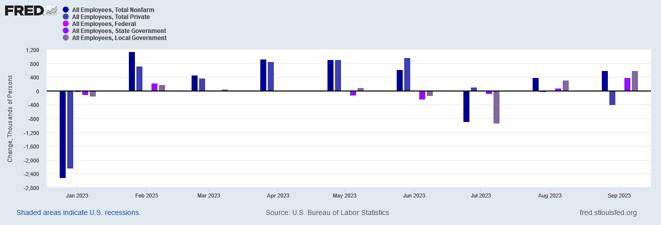 If we take the BLS jobs report at face value, then Bidenomics has gifted the US with a pile of government jobs in September.