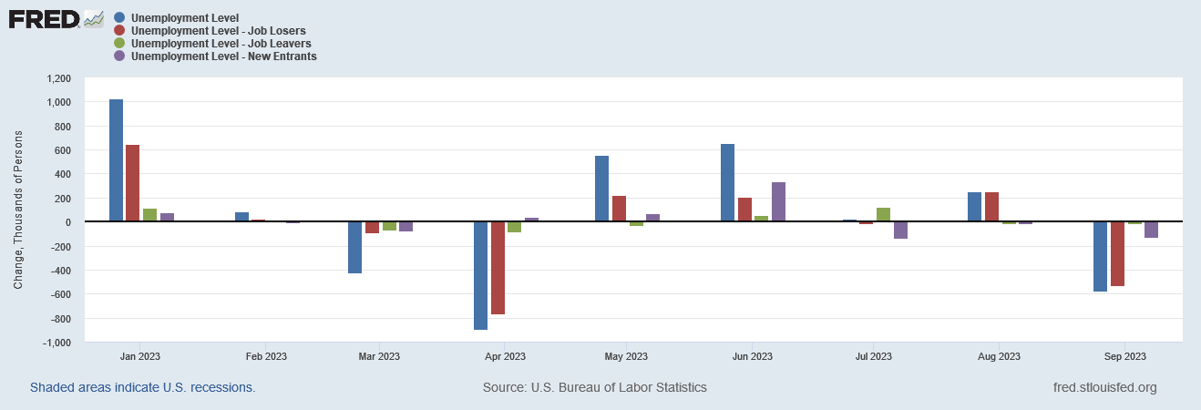 People who left their job, got fired from their job, or looked for a job and couldn’t find one all declined in September, according to the unadjusted data.