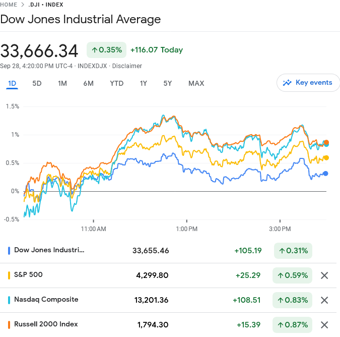 That itself is a rather surprising vote of confidence overall, considering that by early afternoon on September 27, all major indices were down on the week, and most were down by more than 2%.