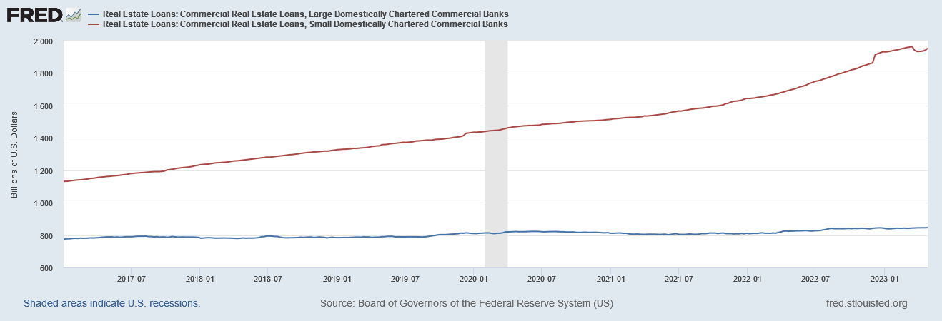 This could prove significant for banking stability, for commercial real estate loans are heavily concentrated among smaller regional banks in the US.