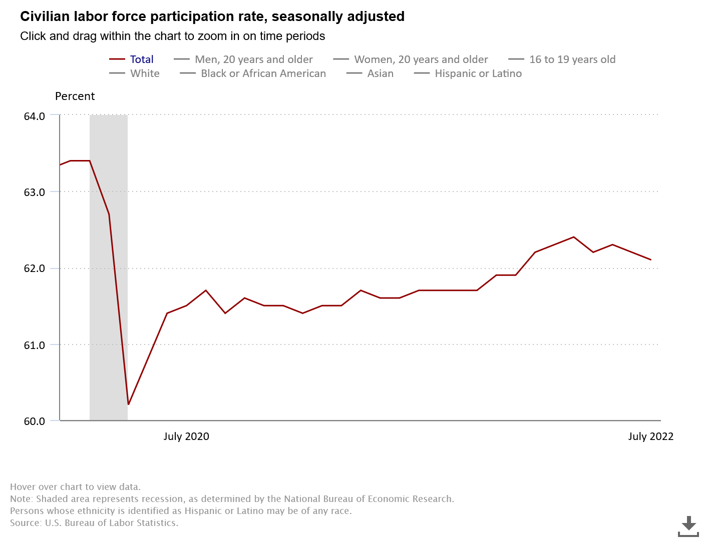 However, that view overlooks the reality of poor labor force participation, which actually decreased in July (one of many reasons the July Employment Situation report is little more than an exercise in Lou Costello Labor Math).