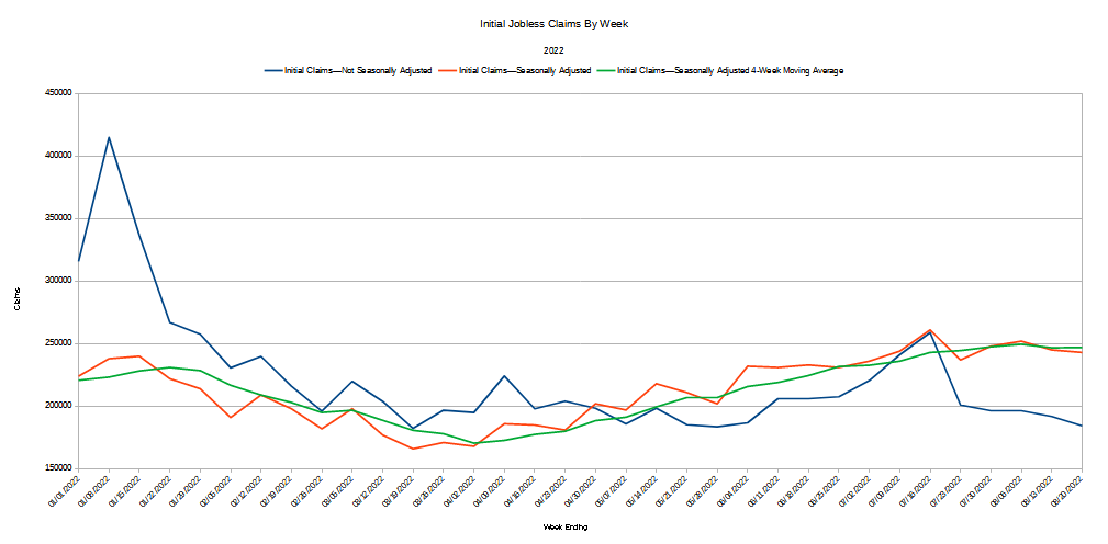 Normally, adjusting unemployment claims data for seasonal variances makes sense, as a number of jobs have seasonal aspects. However, a sustained deviation between the raw unadjusted claims numbers vs the seasonally adjusted ones has emerged since the middle of July,