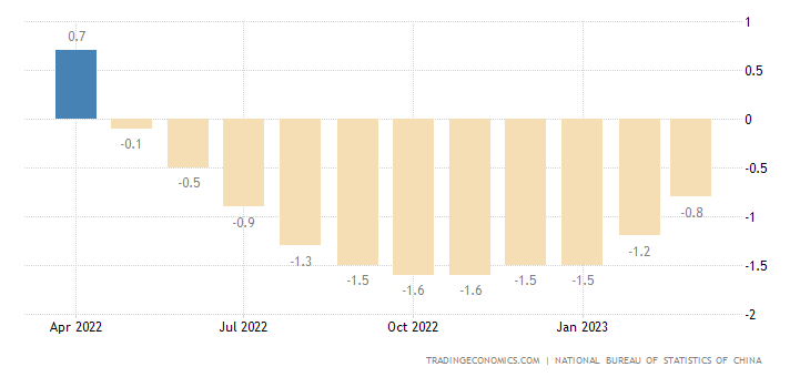 For March, China’s National Bureau of Statistics reported China’s Producer Price Index dropped year on year by 2.5%.
