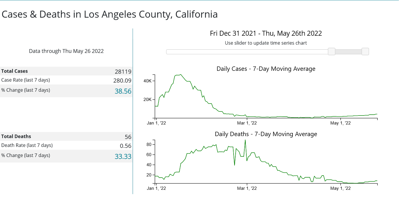 Los Angeles County, on the other hand, has seen nearly a 40% rise in the seven-day average.