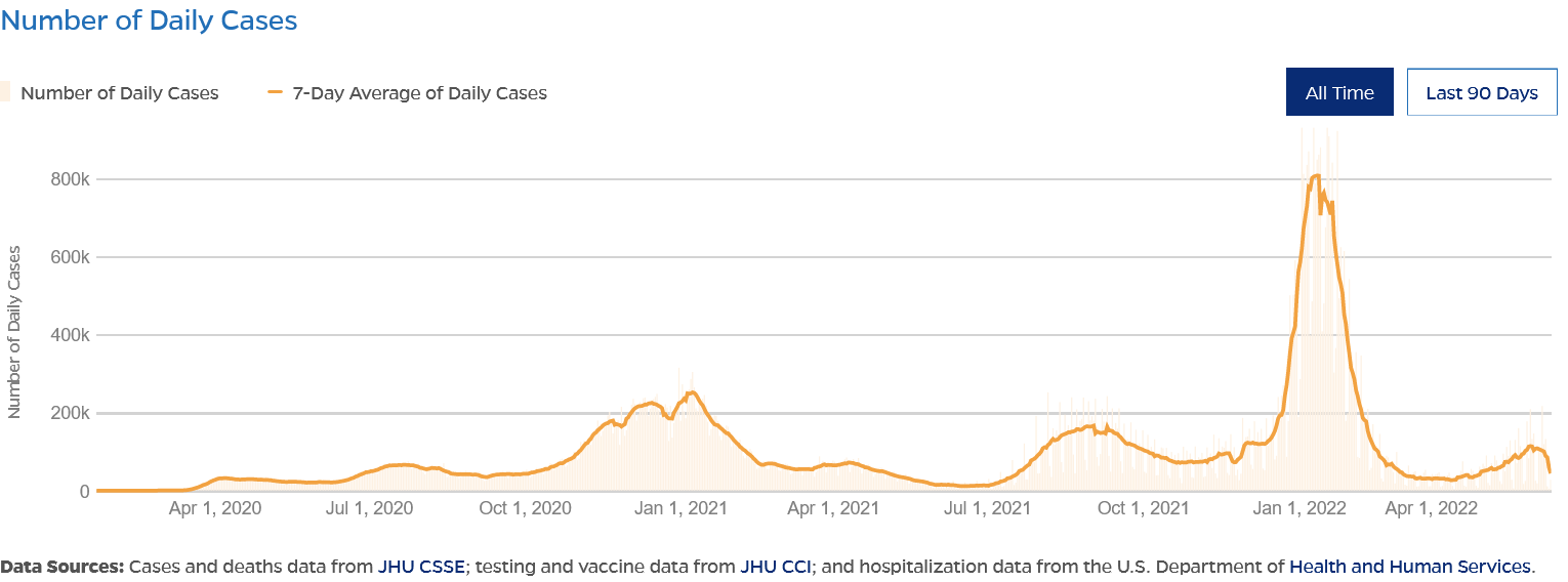 The error is significant not just because of the magnitude, but also because Ms Beale fails to acknowledge that the Johns Hopkins data shows COVID cases in the US declining since May 18, 2022.