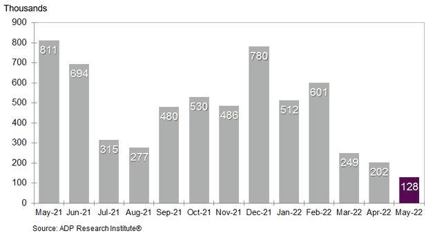 As looming interest rate hikes fuel uncertainty over the economic recovery, private U.S. employers posted their worst monthly job growth in more than two years on Thursday, according to payroll processor ADP, which notes that prolonged inflation and the resulting central bank policy could be starting to temper growth in the red-hot labor market.
