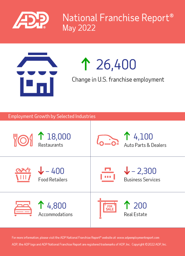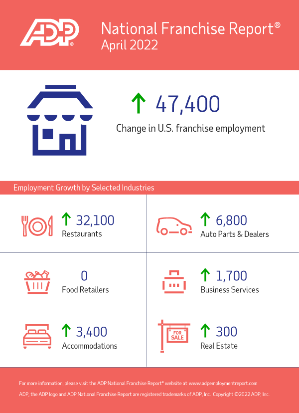 Among national franchise businesses, hiring rose, but was not across the board, with food retailers and business services posting payroll declines.