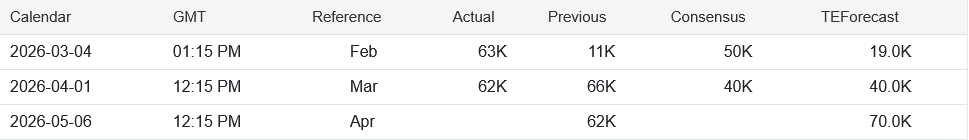 There is no denying that ADP is reporting two months of solid job growth. 66,000 jobs in February and 62,000 jobs in March is indisputably solid job growth.
