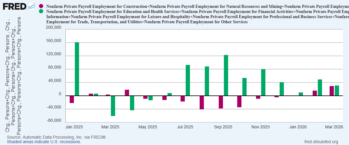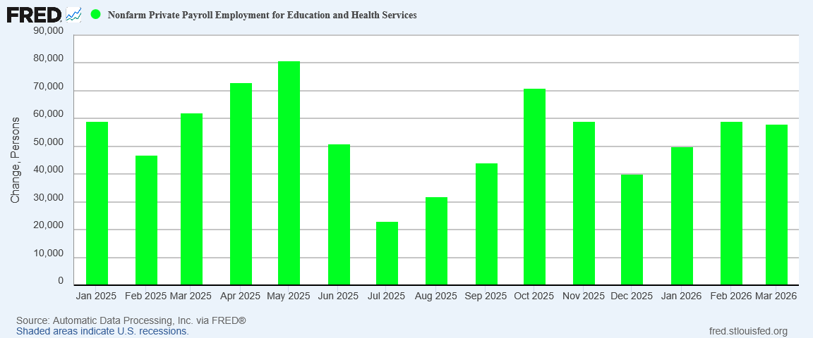Without Healthcare, and to a lesser extent Construction, the ADP report would show negative job growth at the headline level.