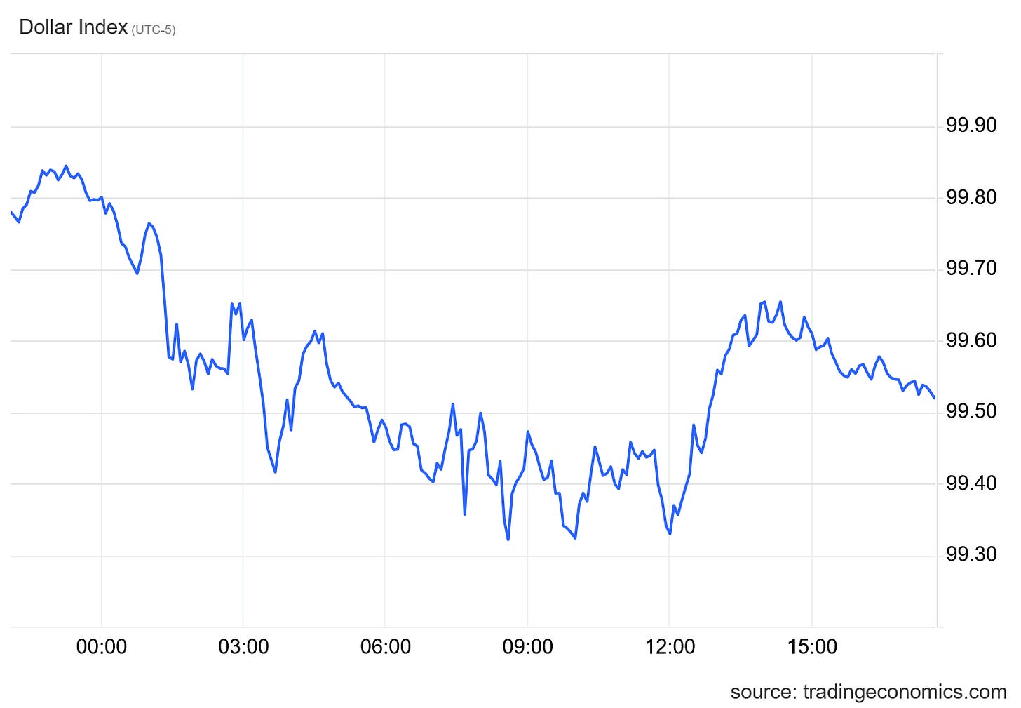 In forex markets, the dollar index had a down day, suggesting that international investors are somewhat less than enthused by the US economy at present.