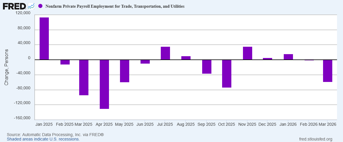 Even within ADP’s solid jobs report, we still have Transportation, Trade, and Utilities.