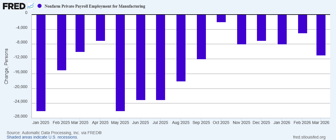 Even within ADP’s solid jobs report, we still have manufacturing shedding jobs.