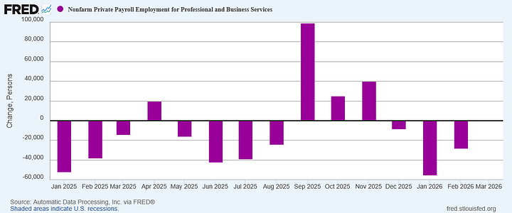 February, readers will recall, ADP put job growth at 63,000.