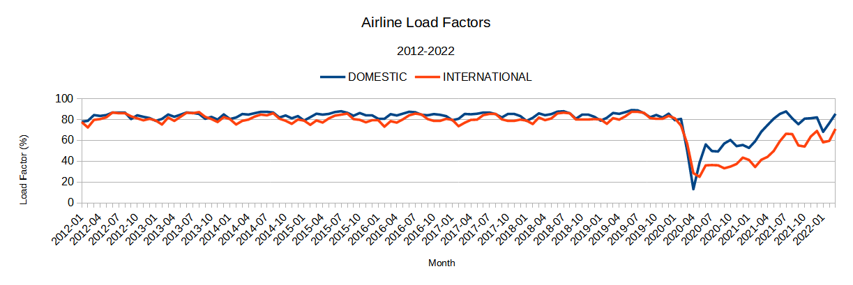 Load factors through the first quarter of 2022 are comparable to the pre-pandemic period, especially for domestic travel.