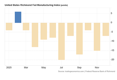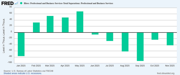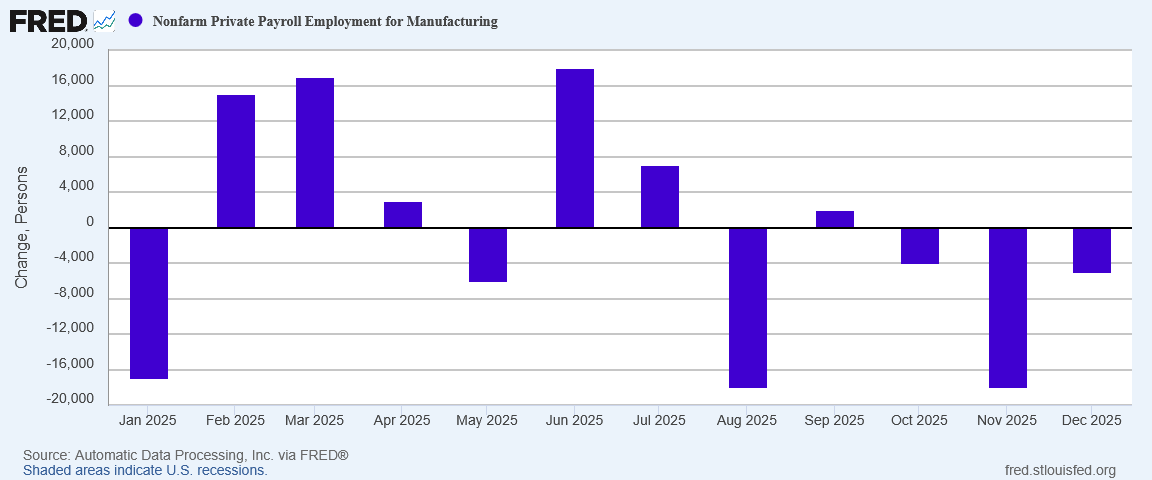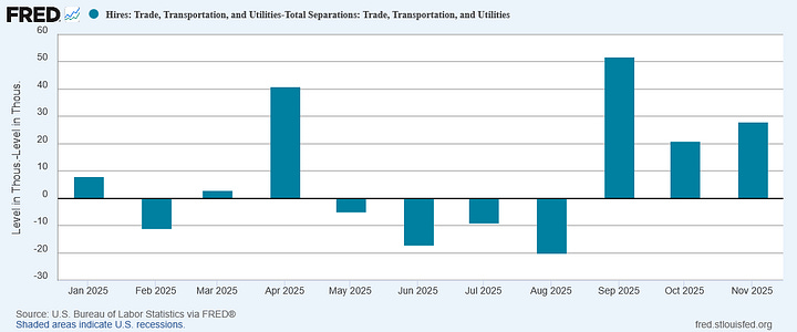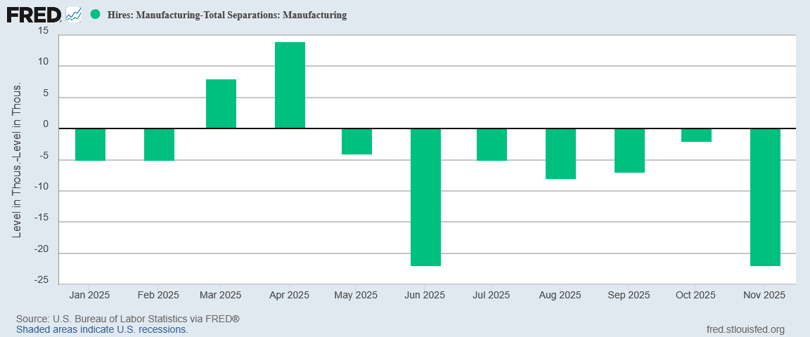By far the biggest concern is the continued job losses within the manufacturing sector. Within the JOLTS data, there were only two months in all of 2025 where manufacturing actually gained jobs.