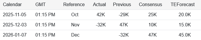 While 41,000 private-sector jobs is an improvement over November’s job losses, the ADP report still was significantly below the Wall Street consensus of 47,000 jobs, as well as the Trading Economics estimate of 45,000 jobs.