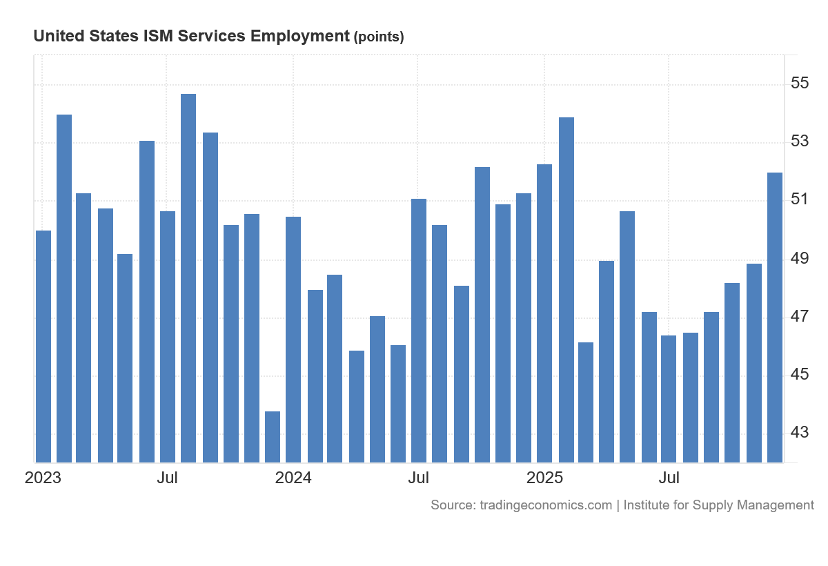 These weaknesses are largely reflected in the ISM Non-Manufacturing Employment PMI, which has been charting contraction for most of 2025, returning to expansion only in December.