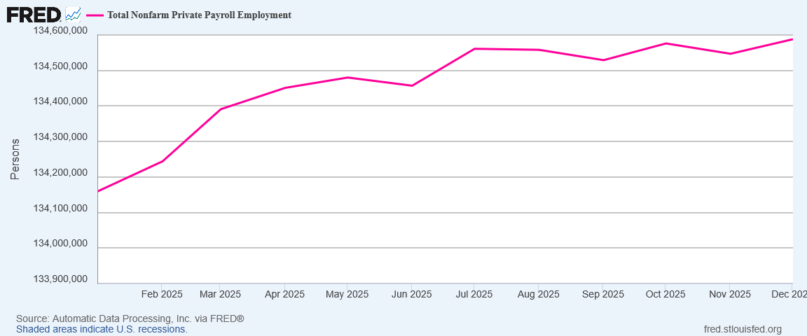For both the JOLTS and ADP data sets, the latter half of 2025 has been a horrible period for job growth. Neither data set indicated there has been any sort of employment turn-around.