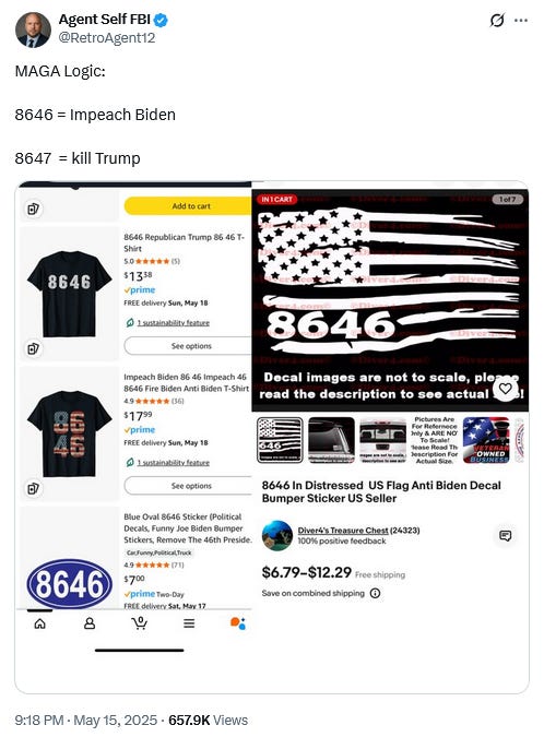 If “8646” was not a call for Joe Biden’s assassination, we cannot plausibly claim that “8647” is a call for Donald Trump’s assassination.