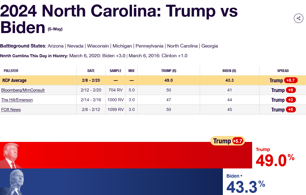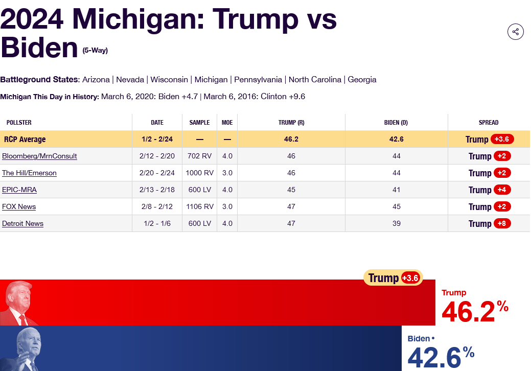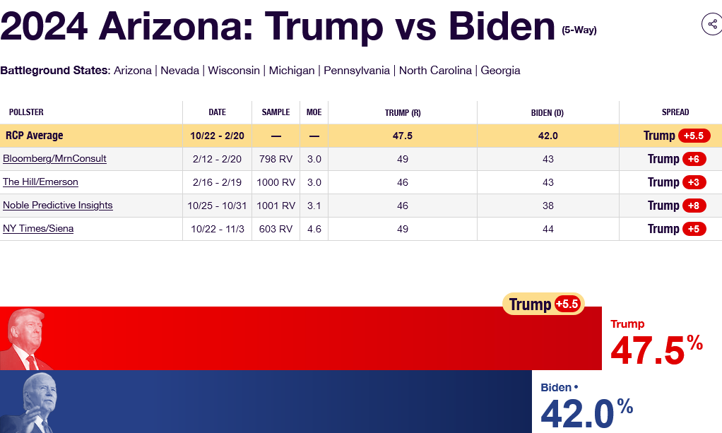 Given that the polling on the Republican nomination race has been fairly accurate, tracking Donald Trump’s voting outcomes in nearly all of the primaries to date, we are compelled to consider the Real Clear Politics poll aggregates for the general election are of similar accuracy—which means voters across the political spectrum prefer Donald Trump over Joe Biden.