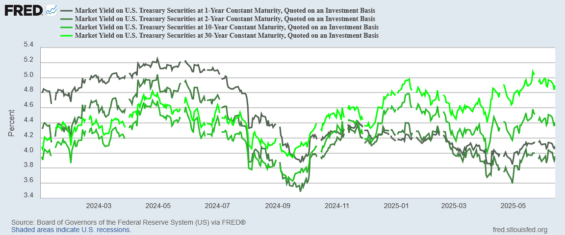 Even without a federal funds rate reduction, market interest rates have been trending down over the past month, after rising somewhat since March.