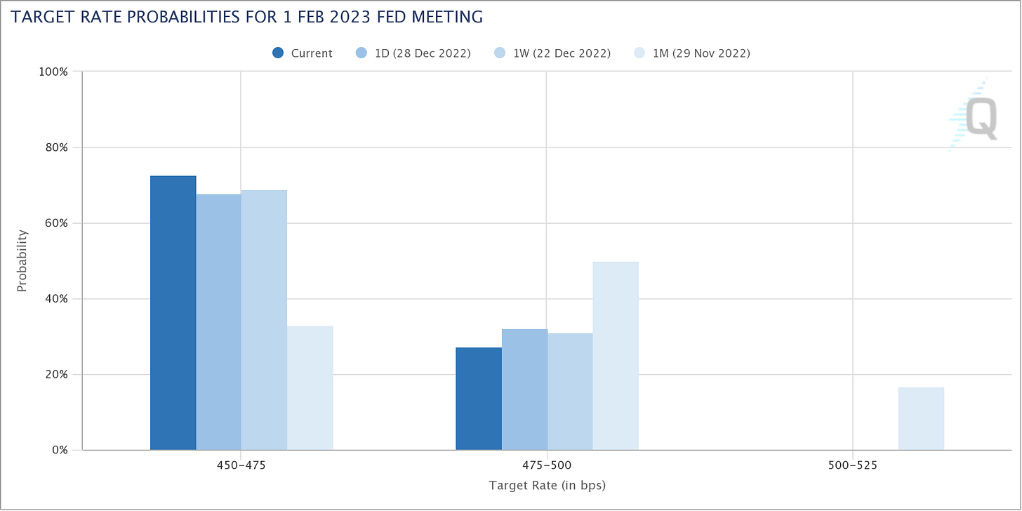 Currently, Wall Street is expecting a 25bps rate hike on 1 February 2023, the date of the next FOMC meeting.
