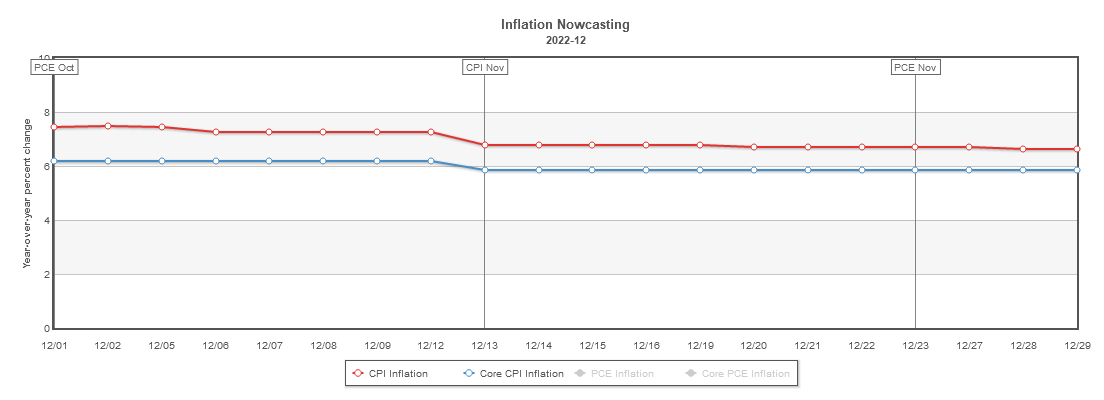 Coupled with persistently high inflation even in the face of a worsening recession—the Cleveland Fed’s inflation nowcast projects December’s year on year inflation rate to fall to 6.6%, a half percentage point drop from November’s 7.1%—the “best case” scenario for the economy moving into 2023 is more stagflation, with inflation remaining elevated even as the economy slows and contracts.