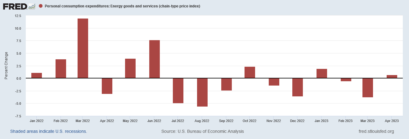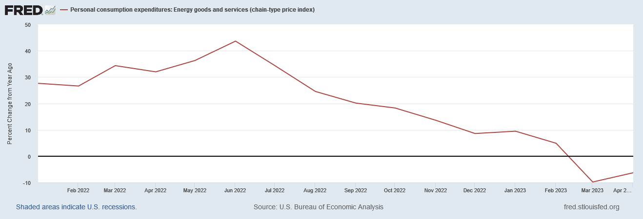 Nor is there any great mystery as to why this is: energy prices peaked in June of last year, and so did energy price inflation.