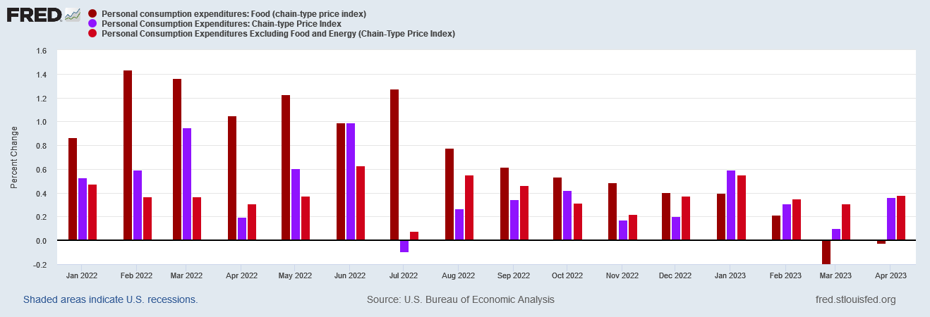 Only in the past few months—since January of this year—has the month on month rate for food price inflation been below either the headline or the core rate.