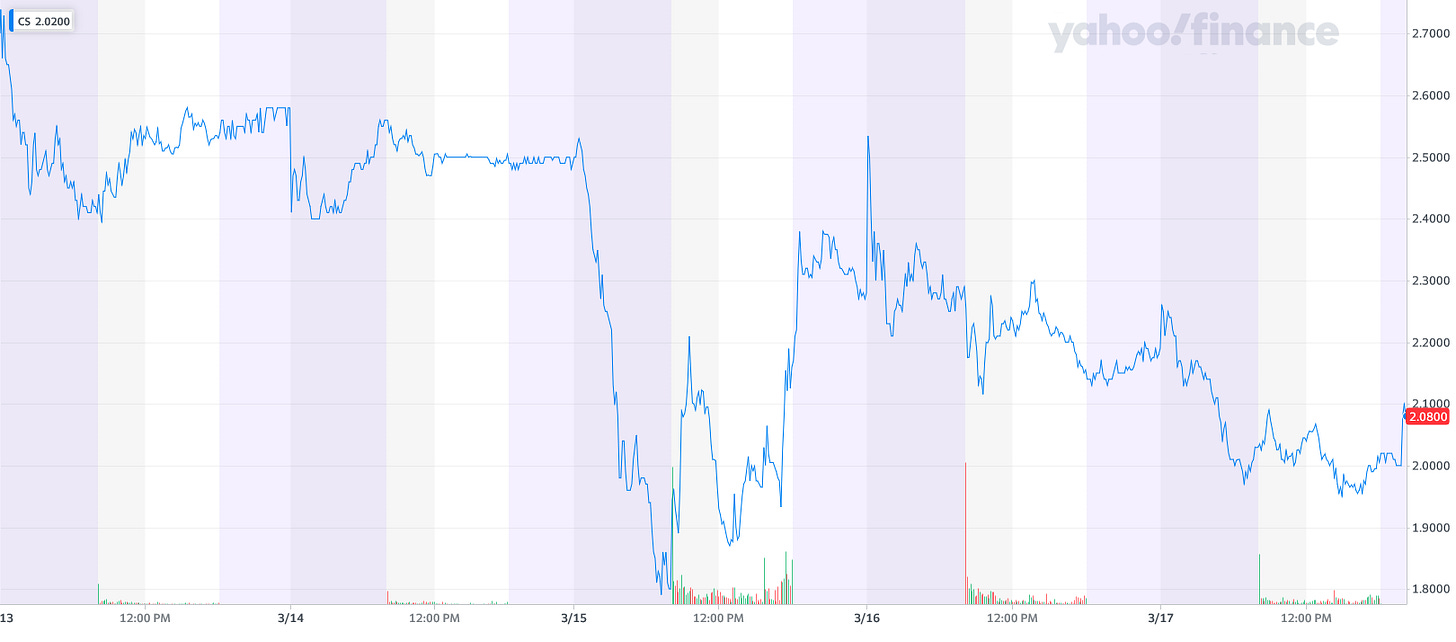Investors were as unimpressed by the Swiss National Bank as they were by Dimon’s Eleven, as Credit Suisse stock continued to fall in after-hours trading.