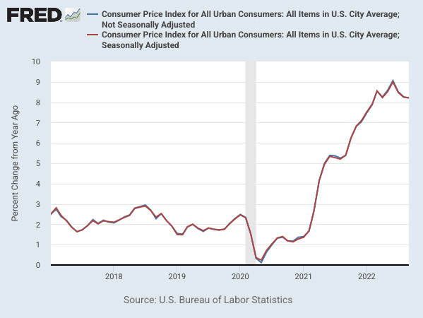 The Consumer Price Index for All Urban Consumers (CPI-U) rose 0.4 percent in September on a seasonally adjusted basis after rising 0.1 percent in August, the U.S. Bureau of Labor Statistics reported today. Over the last 12 months, the all items index increased 8.2 percent before seasonal adjustment.