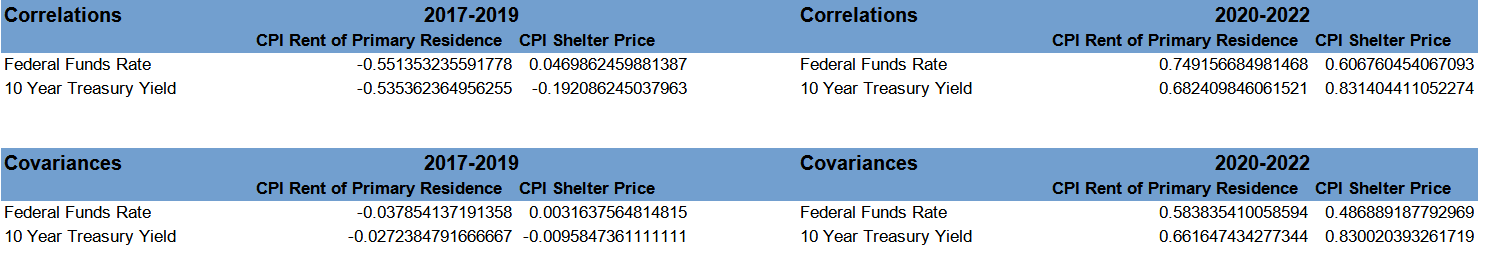 The correlation coefficients are clearly indicating that interest rates are anything but a good weapon for fighting shelter price inflation post-pandemic.