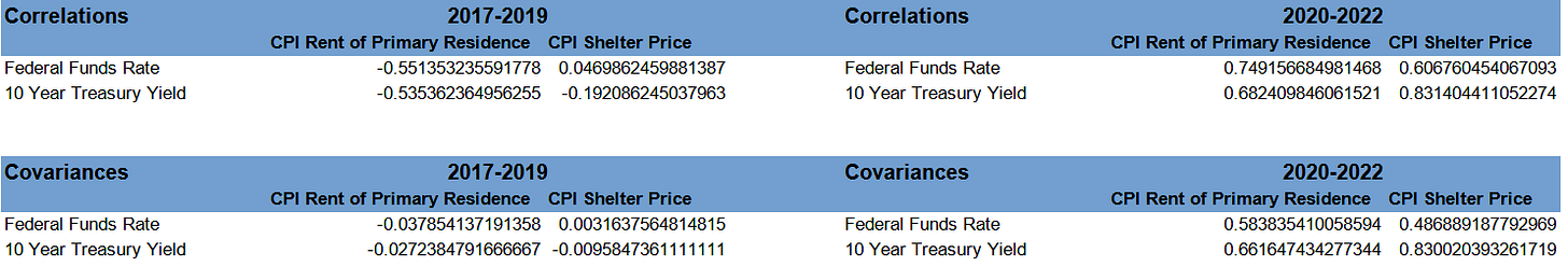 Further, even though interest rates showed the expected negative correlation with shelter price inflation before 2020, from 2020 forward that correlation inverted and became positive.
