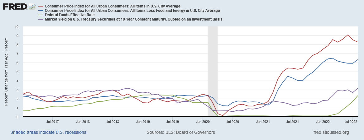 If there is no reliable correlation between interest rates and inflation levels, Powell’s thesis that raising interest rates will repair consumer price inflation and push it back down is immediately shown to be absurd. It would be equally absurd to deny the measured increases in inflation across the board in August, even after a full six months of rising interest rates and Treasury yields.
