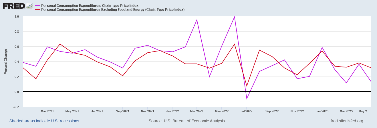 Despite the best efforts of the media to portray the PCE report as showing “cooling” inflation, the reality is that it shows no change at all on the core inflation which the Fed watches most closely. After fifteen months of rate hikes, with another rate hike seemingly all but certain next month, and the Fed has made no progress on core inflation.
