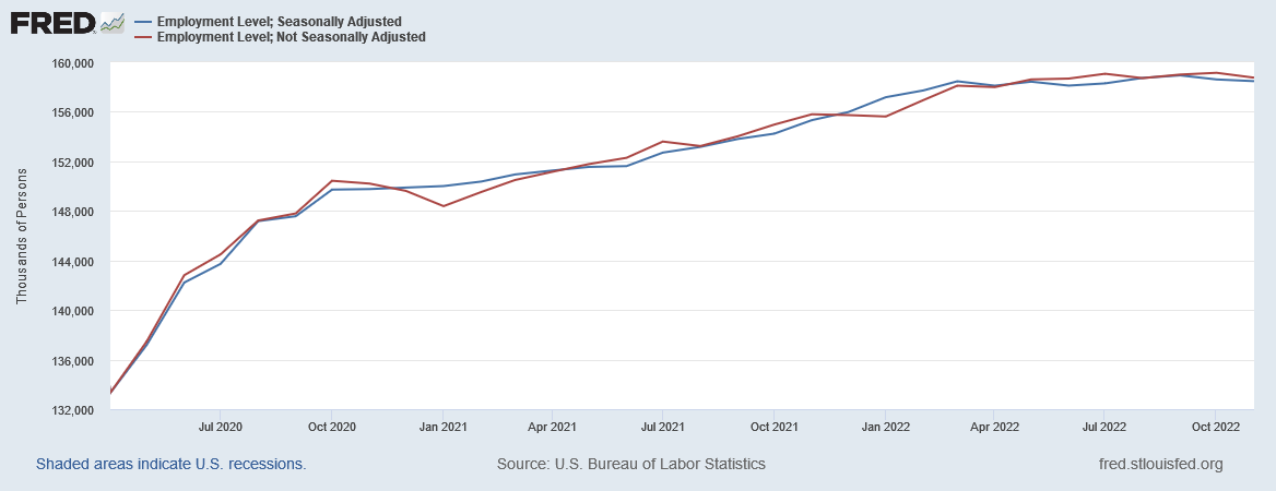 Viewed another way, this month’s raw-data decline in employment recalls a similar decline in December 2020, when the unadjusted employment figure dropped 886,000.