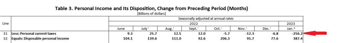 Somehow the BEA recorded a $256 Billion drop in personal taxes, which artificially boosted disposable personal income.