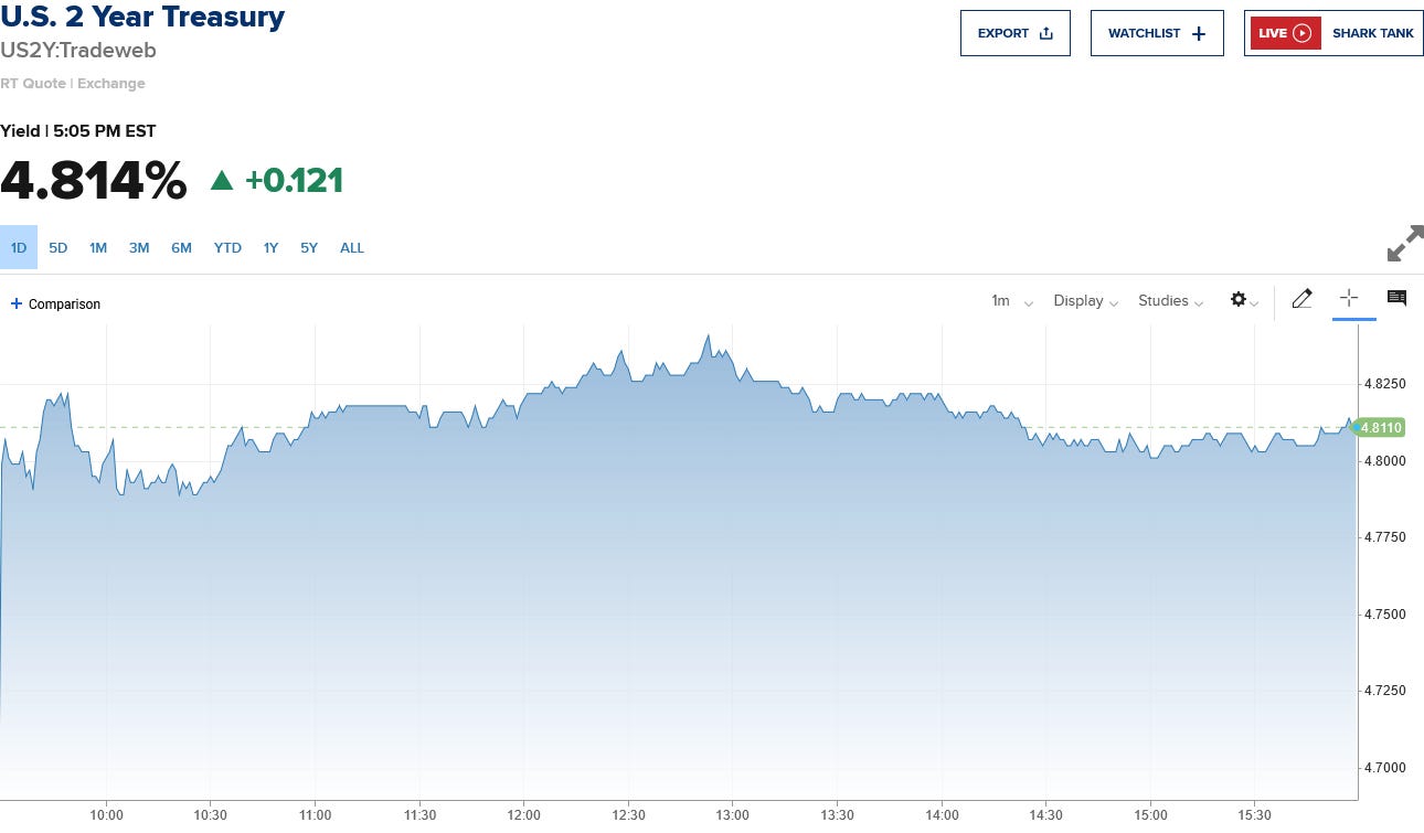 The 2 year Treasury yield ticked up slightly.