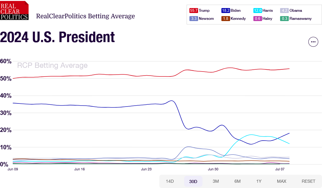 Yet this argument flies in the face of apparent voter awareness that, should Biden somehow win re-election, Harris is highly likely to have to accede to the Presidency soon after.